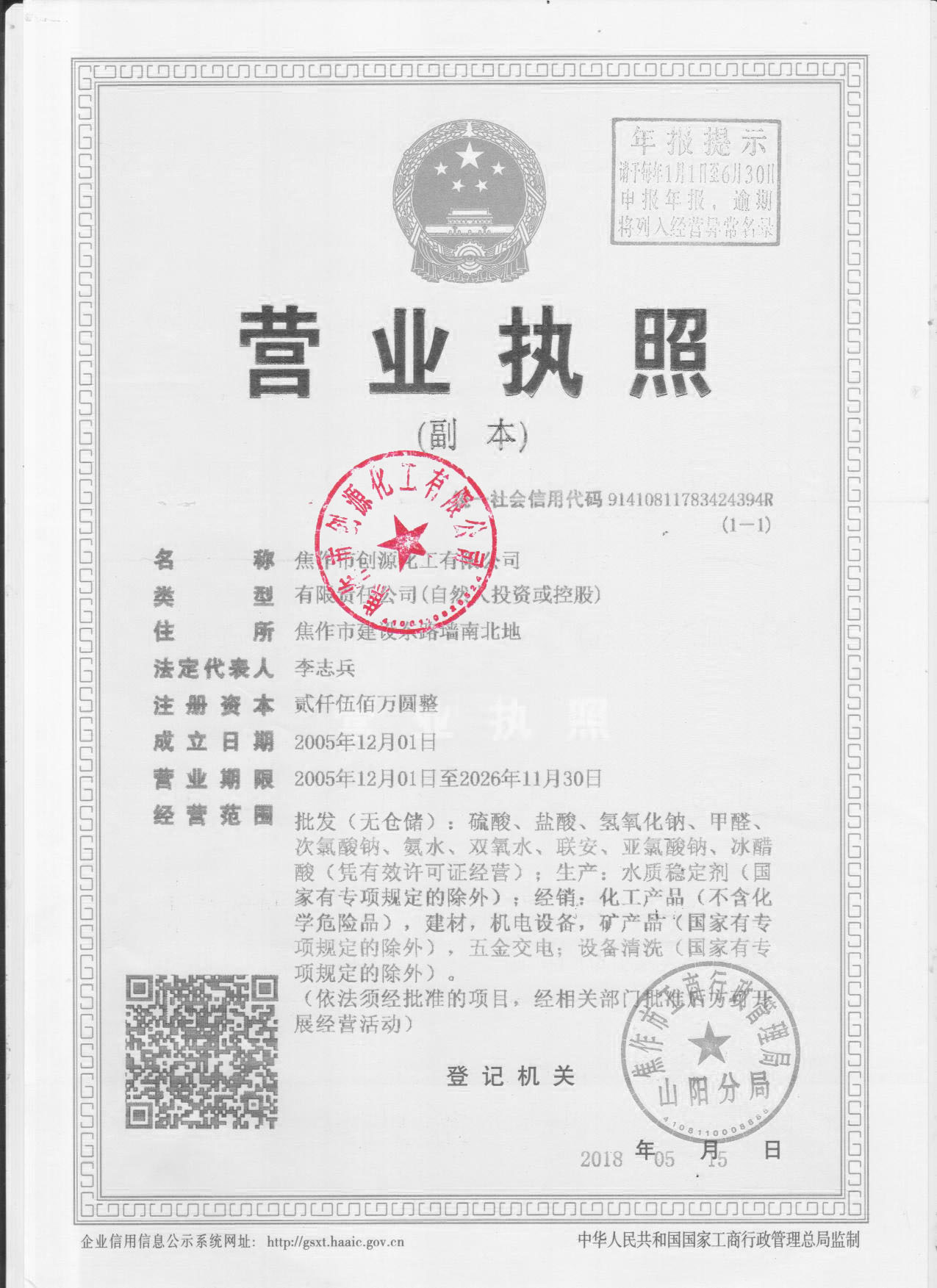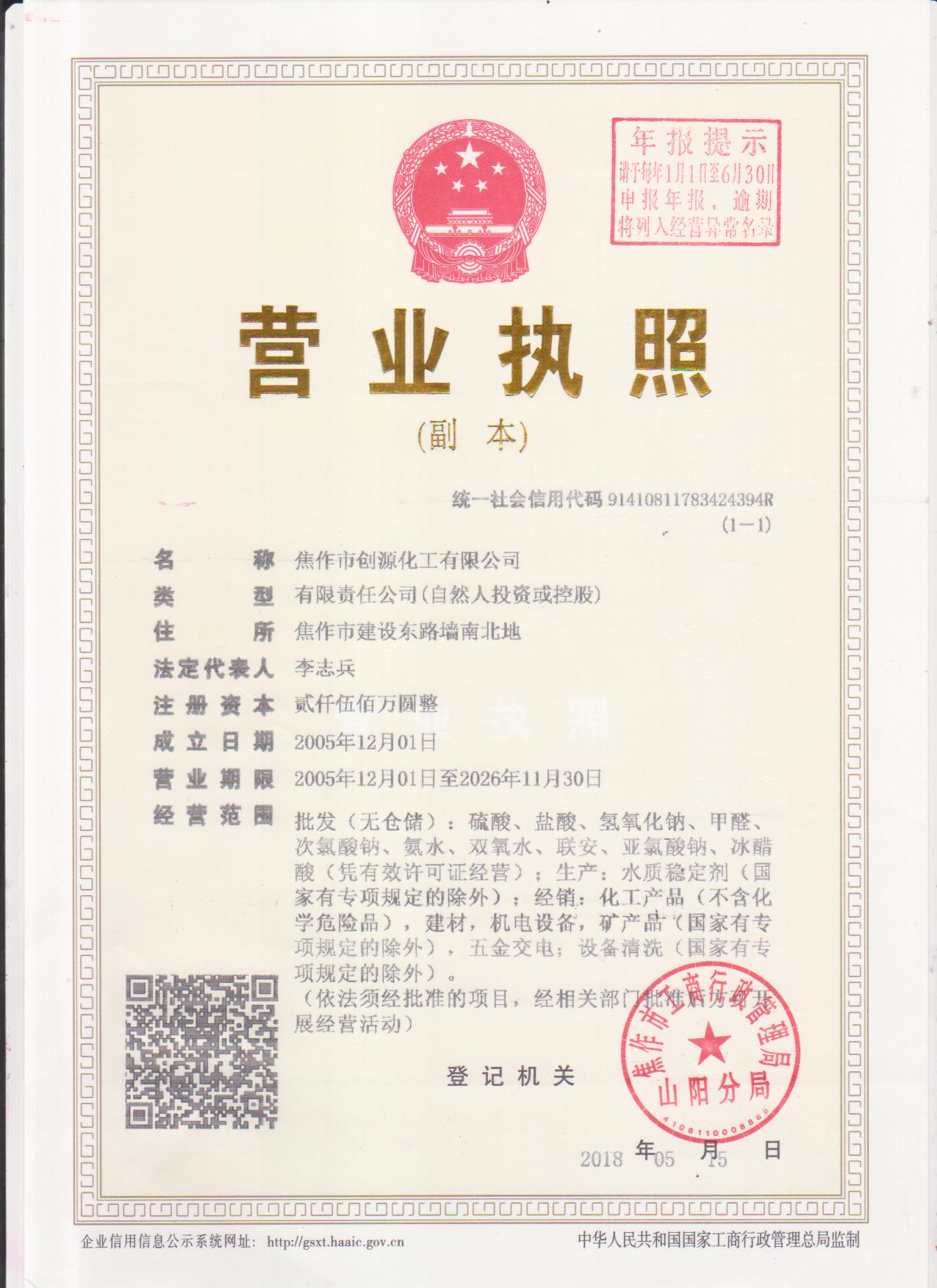 2017 焦作市創(chuàng )源化工有限公司
